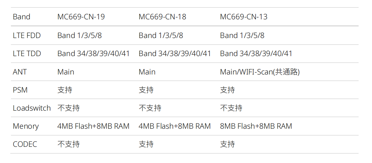 MC669-CN 是款(kuan)適用(yong)于 FDD/TDD 多種網絡(luo)制(zhi)式、多頻(pin)段的(de),寬帶無線終端產品(pin)。MC669-CN 產品(pin)包含的(de)適用(yong)子型號說(shuo)明如(ru)下:
