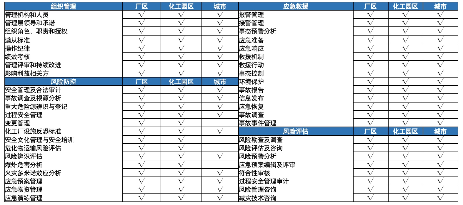 安全管理(li)配套(tao)軟件產品(pin):風險(xian)評估產品(pin)、風險(xian)防控(kong)產品(pin)、應急(ji)管理(li)產品(pin)、體系(xi)審核產品(pin)等等