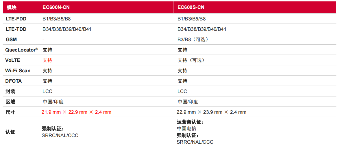 EC600N-CN 和 EC600S-CN 差(cha)異對比(bi)