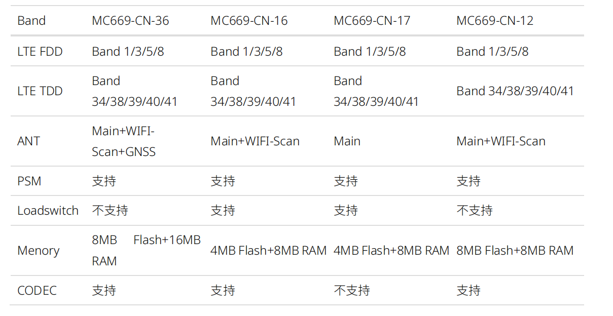 MC669-CN 是款(kuan)適用(yong)于 FDD/TDD 多種網絡(luo)制(zhi)式、多頻(pin)段的(de),寬帶無線終端產品(pin)。MC669-CN 產品(pin)包含的(de)適用(yong)子型號說(shuo)明如(ru)下: